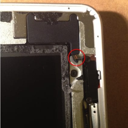 2) There are a number of very tiny ribbon cables that run near the edges of the glass (particularly the top right hand corner) which often get caught in the adhesive and are easily ripped/broken while removing the glass (see image 1 below).